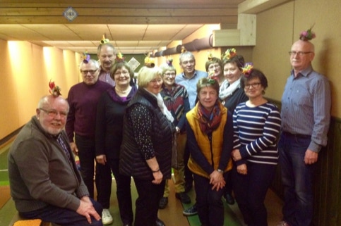 Regelmäßig feiern wir in der Kegelbahn Geburtstage, Weihnachten oder Fasching. Im Jahr 2017 bastelte Rita S. ein besonderes Highlight zu unserem Treffen und so kam es zu einen unvergesslichen Kappenabend.