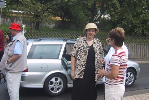 Auch die Schikanen von Petrus kurz vor der Auffahrt der Hochzeitsgäste stecken wir weg. Sonnenschirme aus der Nachbarschaft verhinderten kurzfristig das Schlimmste. Notfalls hätte Heinz noch ein Zelt angekarrt aber die ersten Sonnenstrahlen bescherten uns pünktlich zum Eintreffen des Brautpaares bestes Wetter.