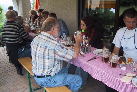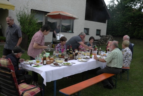 Nach der langen Dürrezeit schmeckte das Bier vom kühlen Fass (Büchenbach) besonders gut. Salate und Fleisch wurden mitgebracht und die Familie S. verwöhnte uns mit einem schönen Abend im Garten. Am runden oder eckigen Tisch, es gab wieder viel zu plaudern. Bei uns ist es halt doch am schönsten. Danke Rita und Heinz im Namen aller Glückkegler.